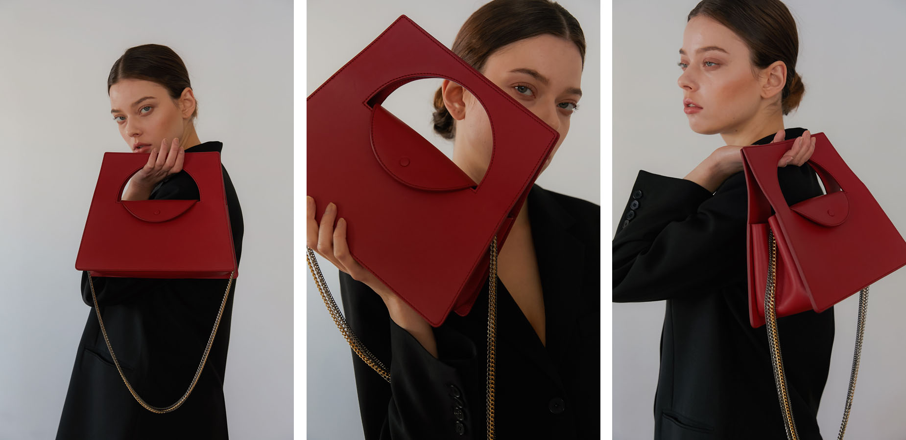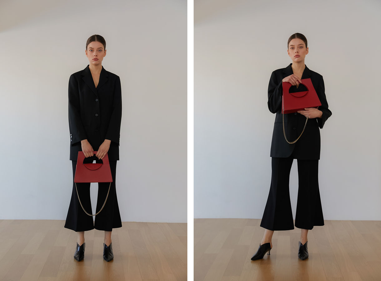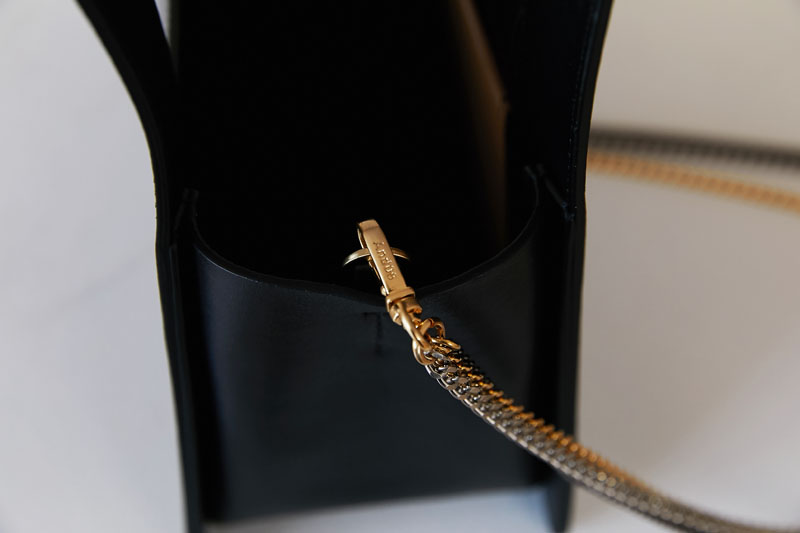 클래식한 사다리꼴(TRAPEZOID) 형태로 모던한 손잡이와 다양한 컬러 도금의 체인스트랩에 포인트를 준 가방입니다.