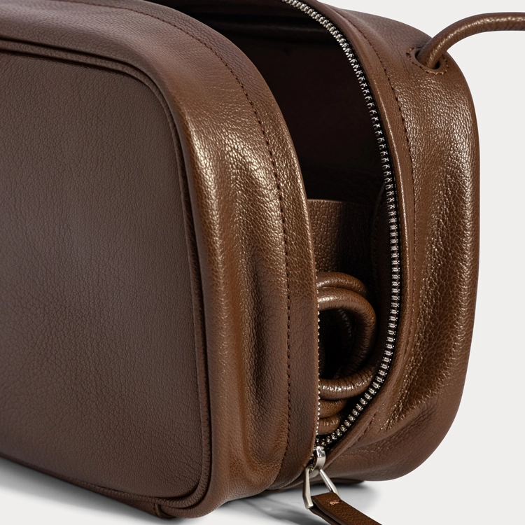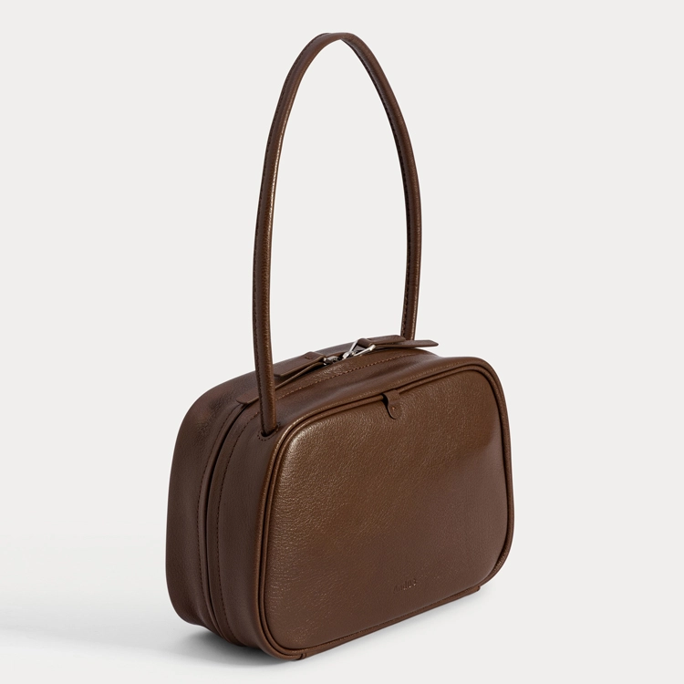 GOAT LEATHER_ARC MINI BAG 제품코드 : AE-B020 CHOCO 부드러운 곡선에서 영감을 받은 ARC MINI BAG. 클래식한 실루엣에 둥근 엣지를 더해 단단함과 부드러움이 공존하는 형태로 완성되었습니다. 가볍지만 형태가 무너지지 않는 쉐입으로 끈을 사용자에 맞게 조절하여 토트, 숄더, 크로스 등의 다양한 형태로 착용할 수 있습니다. 내부 오픈포켓으로 실용성까지 놓치지 않았습니다. 손에 들거나 숄더로 착용 시 어떤 각도에서도 단정하고 아름다운 실루엣을 유지합니다. 매트한 질감과 고운 윤광이 더해져 시간이 지날수록 자연스러운 멋이 살아납니다. 탈부착 가능한 태슬과 신주 볼장식이 가방의 완성도를 높이며, 단단하고 묵직한 소재감으로 고급스러운 균형감을 더합니다. *신주(Brass) : 묵직한 무게감과 빈티지 가공법으로 핸드백 피팅의 완성도를 높여줍니다. *한쪽 스트랩은 매듭으로 고정하고, 반대쪽 스트랩으로 길이를 자유롭게 조절할 수 있는 3WAY 착용 시스템입니다. 토트 · 숄더 · 크로스바디 세 가지 스타일을 간편하게 연출할 수 있으며, 스트랩을 짧게 사용하실 때는 내부로 남는 여분의 끈을 둥글게 말아 옆 사이드 포켓에 깔끔하게 숨길 수 있어 실용성과 디자인을 모두 만족시킵니다. |